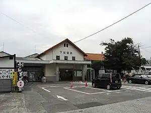 Shimo-Gion Station (下祗園駅 or 下祇園駅, Shimo-Gion-eki) is a JR West Kabe Line station located in Gion, Asaminami-ku, Hiroshima, Hiroshima Prefecture, Japan.[1] The station name on the building uses an older kanji for the "gi" (