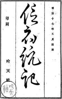 It was printed and published in 1884 (in the Meiji period), but the original has been lost.[2]