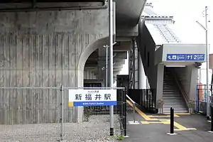 Shin-Fukui Station was opened on February 11, 1914. The line was extended between Fukuiguchi and Fukui on September 21, 1929. On September 1, 1942 the Keifuku Electric Railway merged with Mikuni Awara Electric Railway. The station was relocated to its present location on March 23, 1997. Operations were halted from June 25, 2001. The station reopened on July 20, 2003 as an Echizen Railway station. The station had a single island platform. On September 27, 2015 the station moved to temporary facilities,[1] and reopened as an elevated station with two opposed side platforms on June 24, 2018.