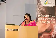 Shirin Sharmin Chaudhury (born 6 October 1966)[1] is a Bangladeshi politician who has served as the first female Speaker of the Jatiya Sangsad since April 2013.[2] At 46 years of age, she became the youngest to assume the office.[2] She was also the Chairperson of the Executive Committee of the Commonwealth Parliamentary Association between 2014 and 2017. She previously served as the state minister of the Ministry of Women and Children Affairs of Bangladesh.[3]