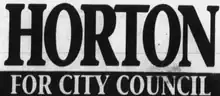 Horton was appointed in 1991, out of twenty-seven applicants, by a unanimous vote to the Chula Vista city council to fill the vacancy created by Tim Nader's becoming mayor following the death of Mayor Gail McCandliss.[11][3] She won reelection in 1992, after raising $20,746 during the campaign.[12][13][14]