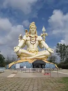The 1,500 tonnes statue of Lord Shiva is considered as the second largest resting statue of Lord Shiva in India and was prepared by sculptors from Shimoga for over 13 months. The civilian design was supplied by Bangalore-situated architects. The idol of Lord Shiva is made of cement and steel. A small Shiva Linga has been placed beneath the statue. Also, the "Shiva Charite" will be engraved on the inside walls of the Temple in the Kannada language to help devotees learn the mythological stories related to Shiva. The Trust wants to make it a major pilgrimage centre.