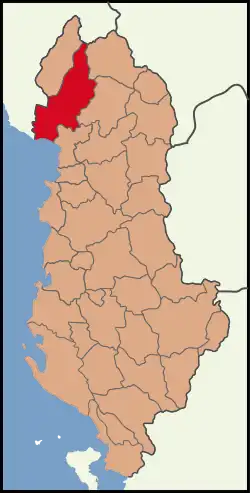 Shkodër District (Albanian: Rrethi i Shkodrës,[1] short name: Shkodër,[2] variants: Rrethi Shkodër[3] and Shkodra[4]) was one of the 36 districts of Albania, which were dissolved in July 2000 and replaced by 12 newly created counties. It had a population of 185,794 in 2001, and an area of 1,631 km2 (630 sq mi).[5] It is in the north of the country, and its capital was the city of Shkodër. Its territory is now part of Shkodër County: the municipalities of Shkodër and Vau i Dejës.