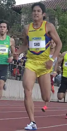 Sho Kawamoto (川元 奨, Kawamoto Shō, born 1 March 1993) is a Japanese middle-distance runner competing primarily in the 800 metres.[3] He represented his country at the 2016 Summer Olympics without advancing from the first round. In addition, he won the bronze medal at the 2015 Asian Championships.