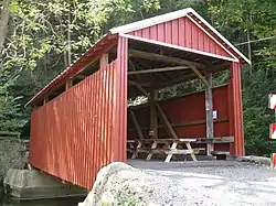 - ↑ "National Historic Landmarks & National Register of Historic Places in Pennsylvania". CRGIS: Cultural Resources Geographic Information System. Archived from the original (Searchable database) on July 21, 2007. Retrieved January 21, 2012. Note: This includes Bill Pennesi and Susan M. Zacher (n.d.). "National Register of Historic Places Inventory Nomination Form: Shoemaker Covered Bridge" (PDF). Retrieved January 21, 2012.