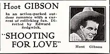 Shootin' for Love is a 1923 American silent Western film directed by Edward Sedgwick and featuring Hoot Gibson.[1] Gibson plays a World War I veteran suffering from shell shock who at his father's ranch becomes involved in a dispute over water rights that leads to gunfire.[2][3] The British Board of Film Censors, under its then-current guidelines, banned the film in 1923.[1][4]