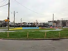 The parkway opened in 1939 after parks commissioner Robert Moses cleared a 200-foot-wide (61 m) strip of land north of the boardwalk. Moses demolished more than 700 buildings in the parkway's path and destroyed what he described as "catch-penny enterprises" along the boardwalk, replacing them with recreational fields.[1][2] In the process, nearly half of the Rockaways' Playland amusement park was destroyed.[3]