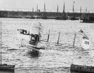 The seaplane, manufacturers serial number S.81, was built at Eastchurch and allocated the military serial number 126.[1] S.81 was delivered to Calshot on 25 May 1914 and accepted by the Navy on 2 June 1914.[1] It had three-bay wings with overhanging upper wings, and was powered by a 160 hp (119 kW) Gnome rotary engine.[2] It was first fitted with a 1½ pounder (37 mm) semi-automatic Vickers quick-firing gun in July 1914. Tests with this gun showed that recoil was severe, with claims that firing the gun would induce a stall.[3][4] It was fitted with a number of different guns for trials,[1] testing a six-pounder (57 mm) Davis gun (an early recoilless gun) in 1915.[5] In 1915 it had a dynamo and searchlight fitted. No longer needed for trials, it was deleted from the inventory in October 1915.[1]