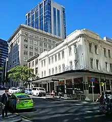 - Hotel DeBrett, 15–19 Shortland Street, 1860 but rebuilt 1920s, called the Commercial Hotel until 1959.[14]