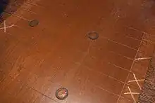 The Dorset long board is a somewhat different game, employing a larger board marked with a four-square and semicircles rather than horizontal lines. This board can be viewed in a British Pathé newsreel.[2] The short-board game was regularly featured in Yorkshire TV's Indoor League programme during the 1970s.