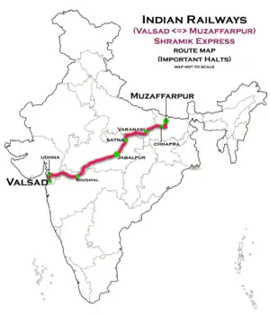 The 19051 / 19052 Valsad–Muzaffarpur Shramik Express is an Express train running between Valsad of Gujarat and Muzaffarpur of Bihar.[1][2]