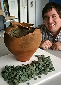 ![]() Pot and coins from the hoard | |