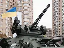 The Shturm turret is a remotely controlled turret, developed in Ukraine, for light armored vehicles.[1][2] The turret adds 1,300 kilograms (2,900 lb) to a vehicle's weight.[3] The turret was developed at the Kyiv Armoured Plant, in Kyiv.[4] The turret is armed with a ZTM-1 30mm autocannon, coaxial 7.62 machine gun, smoke grenades, and a launcher for a pair of anti-tank missiles.[5]