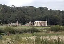 Today Sibton Abbey is a picturesque ruin, largely overgrown, with the refectory and the south wall of the nave still visible but subject to modern repairs.[27] The Abbey and the Manor remain in the hands of the Scrivener heirs, today's Levett-Scrivener family, and the ruins are private.[28] Many of the cartularies of the old Abbey were transferred to the East Suffolk Record Office[29][30] by J.E. Levett-Scrivener Esq., who also transferred some of the Abbey's early medieval music.[31]