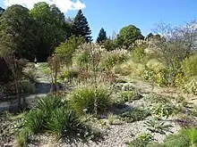 The Sichtungsgarten's role as a research and teaching garden is emphasized by the arrangement of plants into long experimental beds.[1] Students are expected not just to identify the plants and their features but also to consider how the plants may be combined for use in public and private planting schemes.[6] Kingsbury finds youthfulness and liveliness to be the garden's shaping qualities and attributes them to the presence of students and visitors.[1]