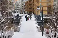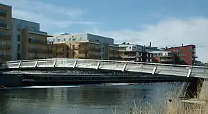 Sicklauddsbron (Swedish: "The Bridge of Cape Sickla") or Apatêbron ("Bridge Apatê") is a bridge in central Stockholm, Sweden. It stretches over Sickla kanal in Södra Hammarbyhamnen. The name Sickla is believed to be derived from a 15th-century provincial word, sik, meaning "minor marsh".[1] The bridge is named Apatê, a Greek word meaning mirage or illusion.[2] Designed by the architects Magnus Ståhl, Erik Andersson (architect), and Jelena Mijanovic, it was awarded the European Steel Design Award in 2003.[3]