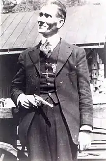 As a child, Hatfield worked on his father's farm. He became a miner in his teens, and then worked as a blacksmith for several years. He received his nickname, "Smilin' Sid", because of the gold caps on several of his upper teeth. He seems to have had a reputation for hard living and fighting, and his appointment in 1919 to the post of Police Chief of Matewan, by the mayor, Cabell Cornelis Testerman (1882–1920), surprised some of the more "respectable" townsfolk.[3] However, he was a staunch supporter of the United Mine Workers of America, as was Testerman: together, they were instrumental in leading the mining community's resistance to the Baldwin–Felts operatives. Operatives offered both men substantial bribes to allow them to station machine guns in the town. Hatfield and Testerman refused. The Battle of Matewan was precipitated by the Baldwin–Felts agents' attempts to evict the families of unionized miners.
