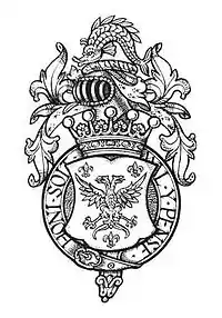 On 16 May 1675, Godolphin married Margaret Blagge, daughter of Thomas Blagge, the pious lady whose life was written by John Evelyn in his book The Life of Mrs Godolphin.[8] She died in childbirth in 1678 bearing his only son, and Godolphin never remarried. Margaret is buried at Breage, Cornwall, the spot being marked by a small brass floor plaque commissioned by the Duke of Leeds. Progeny: