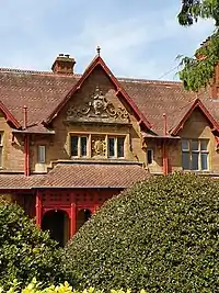 Hill retired from commercial life after dissolving the Savage & Hill partnership on 1 November 1881.[46][47] By that point, he had accumulated considerable wealth, and consequently, was able to spend a substantial amount of money making improvements to Langford House. He re-modelled the house, added a belvedere tower in Italianate style,[lower-alpha 15] and decorated the interior in typical Victorian style with dark paint and panelling.[37]: 209 [lower-alpha 16] In 1891, a clock tower was built above the coach house and a gilt turret clock and carillon installed in November of that year.[51][lower-alpha 17] He installed a conservatory and greenhouses, constructed in teak by Foster and Pearson of Beeston, Nottinghamshire,[53] to provide the bedding and house plants for the estate.[23]: 44