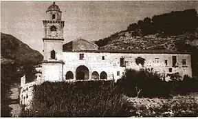 At dawn on February 6 the white flag was hoisted over the castle, and Mirabelli sent Lieutenant Trigona to General Reynier with an offer of capitulation, which was promptly accepted. Mirabelli had to go to the French camp by lowering himself from the walls with a rope, as the Bourbon garrison at the Paraporto gate refused to open it.[13] The surrender was signed in a farmhouse in the Rota district, near the Carmine Church. An epigraph commemorating the siege, dictated by Marquis Ernesto De Luca of Lizzano, was placed on the facade of that house in the early twentieth century.[14]
