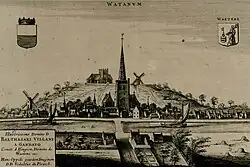 At the same time that the relief force marched to Saint-Omer, Thomas of Carignano sent Paolo Fanfanelli, Sargento Mayor of Carlo Guasco's tercio, and his soldiers, to occupy the tower of the Abbey of Watten, located on top of a hill and guarded by 50 French soldiers under an officer since Count Paul Bernard de Fontaine had abandoned the village.[26] Lacking of supplies and discouraged by the size of the Spanish army, they promptly surrendered.[26] Châtillon, thinking that Watten was a crucial position to control the riverside of the Neufossé, had dispatched the Regiments d'Espagni and de Fouquerolles over the village, but they arrived after the tower had surrendered.[26]