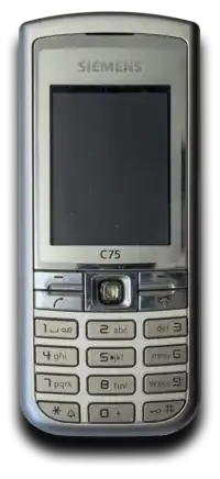 The Siemens C75 is a mobile phone sold by Siemens. The C75 is a triband cameraphone. It weighs 85 g and dimensions are 103 x 44 x 17 mm (length x width x depth). It includes GPRS class 10 connections with WAP 2.0 capability and IrDA. It supports polyphonic ringtones in MIDI and WAV formats. It has 10,2 MB of onboard memory available for the user. The phone also includes digital imaging and picture messaging. It has a built-in camera capable of taking pictures in VGA resolution (640 x 480 pixels) and recording videos. It also supports SMS archiving.