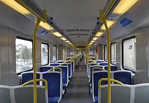- Open articulation. Passengers can freely move from carriage to carriage, within a 3-carriage set, without opening doors, the first such train with this configuration in Melbourne.
