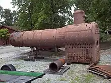 The rebuild included boring out the cylinders and turning the drive wheel tires on a lathe. [11] When work on the disassembled locomotive resumed, and the boiler was inspected thoroughly by ultrasound testing,[10] it was discovered that a new boiler was necessary. Its old lap seam design made retrofitting it to modern standards too costly,[11] and the risk of the boiler losing its historical integrity was a risk Railtown staff decided not to take. Engineering drawings and other technical assistance needed to build a new boiler were provided by the Strasburg Rail Road in Lancaster County, Pennsylvania.[11] The old boiler was shipped to the Chelatchie Boiler Works of Camas, Washington to be used as a reference. Chelatchie fabricated a new welded boiler for the No. 3 at a cost of US$600,000.[11] Following the completion of the new boiler, both boilers were shipped to the historic Southern Pacific shops in Sacramento, California and fitted on the original frame. The locomotive was then moved via truck back to Jamestown, California for final assembly.[12]