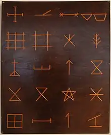 Lixa Filgueiras argued that there are two types of symbols, distinguished by their use: the marcas (marks) and siglas. The marks served as a way to register ownership and thus were commonly present. The siglas, on the other hand, were used for magical and religious concerns.[1] The siglas, being symbols of a mythical character, were thus rarer both in their ancient and newer forms.