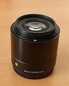 Sigma 60mm F2.8 DN Art lens is a standard prime lens for Sony E and Micro Four-Thirds mounts, announced by Sigma on January 29, 2013.[1] It was only the third interchangeable lens brought to market by Sigma for a digital mirrorless camera, and the second time doing so (the first two lenses were released together in January 2012).[2]