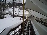 Although skeleton wasn't initially in the building plan, Sigulda has hosted World Cup races in skeleton since the 2000s. Also, luge competitions are hosted in Sigulda each year, however, the track can't host four-man bobsleigh races, therefore there haven't been any World Championship races hosted in Sigulda, although in the 2018/2019 season a Bobsleigh World Cup stage will take place in Sigulda.[5][6] Zintis Ekmanis and the original track designers has designed a new layout which would change two curves and make four-man bobsleigh races possible, though some lugers are not happy with this idea,[7] because this may render the track unusable for women's singles and men's doubles lugers. Also, Dainis Dukurs has said in an interview for Sporta Avīze that there was an experiment involving Juris Šics, Andris Šics, Tomass Dukurs and Martins Dukurs, in which the quartet drove with a four-man bobsleigh without crashing. Dukurs stated that this proves that the track is, in fact, suitable for four-man teams, but to make it perfect for bobsleigh, most of the track should be rebuilt. The track will undergo major renovation after 2014 season.[8] Also, an artificial ice start estacade was built in summer of 2008. It would have been used for bobsled, skeleton, and luge events for the 2026 Winter Olympics had the bid of Stockholm–Åre won.[9][10]