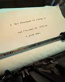 In 2014, the Listening Point Foundation acquired Olson's cabin on Burntside Lake. The property included the cabin Olson built near his home where he did his writing, which has since been listed on the National Register of Historic Places. Everything is as he left it at his unexpected death including his photos, decoys, pipes, books, maps, a collection of rocks and other artifacts. The typewriter he used to write all his articles, books, and letters still sits on the desk. The last thing he wrote on it is still on the paper in the typewriter: “A New Adventure is coming up / and I’m sure it will be / A good one."[8]