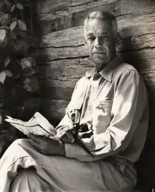 Born in Chicago, Illinois to Swedish Baptist parents, Olson grew up in northern Wisconsin where he developed his lifelong interest in the outdoors. They moved first to Sister Bay, then Prentice, then Ashland.[1] In June 1921, Olson took his first canoe trip where he fell in love with the canoe country wilderness of northern Minnesota that would become the Boundary Waters Canoe Area Wilderness (with his help).[1] His first article, an account of a canoe expedition, was published by the Milwaukee Journal on July 31, 1921.[1] In August of that year, Olson married Elizabeth Dorothy Uhrenholdt, and the two spent their honeymoon on another canoe trip in the Boundary Waters. He worked as a canoe guide for J.C. Russell's outfitters on Fall Lake in Winton, Minnesota, before purchasing the business in 1929. Circa 1931 Olson ran Border Lakes Outfitters outside of Winton MN on the west end of Fall Lake serving the boundary waters area.[2][3][4]
