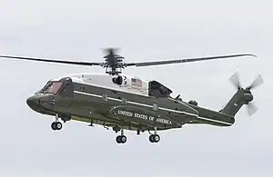 The Sikorsky/Lockheed Martin VH-92 Patriot[3] is an American helicopter under development to replace the United States Marine Corps' Marine One U.S. presidential transport fleet. It is a militarized variant of the Sikorsky S-92 and is larger than the current Marine One helicopters.[4]