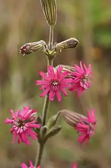 - Silene scouleri ssp. scouleri — Scouler's catchfly; along the Pacific coast from British Columbia to central California, and some areas inland. It grows in coastal prairie, bluffs, and other habitat. Its petals are white or pinkish, with two or four lobes and sometimes lateral teeth.[4][5]