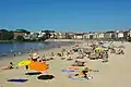 The beach is located in the centre of Sanxenxo, surrounded by a promenade.