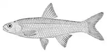 The silverband shiner (Notropis shumardi) is a species of ray-finned fish in the genus Notropis. It is endemic to the United States, where it is found in the Mississippi River and main tributaries in lower Ohio, Arkansas, Louisiana to Illinois and South Dakota, and several Gulf slope drainages.