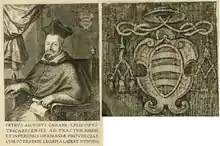 On August 8, 1642, the Inquisition arrested and imprisoned the founder of the Piarist Order Joseph Calasanz (1557–1648) and his co-workers. Petra Sancta was appointed on May 9, 1643 as the apostolic visitator for the Piarist Order. - ↑ Tesserae gentilitiae ex legibus fecialium descriptae. Rome, 1638
