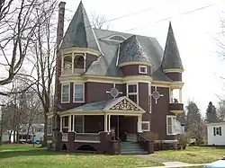 Simeon B. Robbins House, or The Miner's Cabin, is a historic home located at Franklinville in Cattaraugus County, New York. It is a three-story, Queen Anne style wood frame dwelling built in 1895. The building features three towers. It is currently used as a museum and meeting space by the Ischua Valley Historical Society.[2]