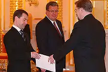 - ↑ "Послы иностранных государств, вручившие верительные грамоты Президенту России". Presidential Press and Information Office. 16 January 2009. Archived from the original on 22 February 2012. Retrieved 2009-03-04.