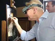 ![]() Gillespie working on the portrait of George Villiers in July 2017 | |