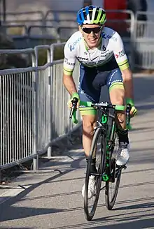 Yates confirmed his and the team's plans for him participating in the Giro d'Italia and the Vuelta a España.[28] In March, Yates won Stage 7 of the Paris–Nice, a mountain top finish to Valdeblore La Colmiane, to take the overall race lead going into the final stage. However, Marc Soler of the Movistar Team, who started 37 seconds down on Yates in sixth place overall, attacked around halfway into the stage along with compatriot David de la Cruz (Team Sky); the duo joined Omar Fraile (Astana) at the head of the race, and the trio managed to stay clear of the rest of the field by the time they reached Nice. As de la Cruz and Fraile contested stage honours, Soler finished third – acquiring four bonus seconds on the finish in addition to three gained at an earlier intermediate sprint – and with a 35-second gap to Yates and the remaining general classification contenders, it was enough to give Soler victory over Yates by four seconds.[29] Later that month, Yates won stage 7 of the Volta a Catalunya after attacking multiple times on the 6.6-kilometre (4.1-mile)-long final circuit through the Montjuïc Park; he finished fourth overall.[30]