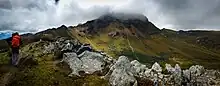 Sincholagua is an inactive volcano located in Ecuador 17 km (11 mi) northeast of Cotopaxi Volcano and 45 km (28 mi) southeast of Quito.[2] It is the 12th highest peak in the country at 4,899 m (16,073 ft) but also one of the lesser known ones. The name of the mountain comes from the indigenous language Quichua and means "strong above".[3] Due to its close proximity to Cotopaxi, the second highest peak in Ecuador and the most popular volcano, it is far less frequently visited compared to other mountains in the country. It has a sharp peak and at one point had glacial cover year round, but all of the glaciers melted a few decades ago. However, snow can still be seen on the peak since there is sometimes heavy snowfall at the summit.[4]