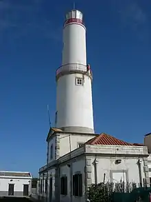 The Sines Lighthouse (Farol de Sines) is located at Cabo de Sines, in Sines, in the Setúbal District of Portugal. It is a 22-metre high white cylindrical tower with a red beacon.[2]