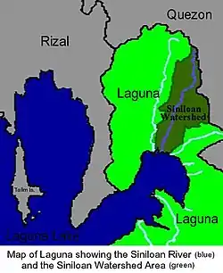 2. Liongson, Leonardo; Guillermo Q. Tabios III; Antonio Daño (2005). "Laguna Lake's Tributary River Watersheds". In Lasco, Rodel D.; Espaldon, Ma. Victoria O. (eds.). Ecosystems and People: the Philippine Millennium Ecosystem Assessment (MA) Sub-global Assessment (PDF). Environmental Forestry Programme, College of Forestry and Natural Resources, University of the Philippines Los Baños.