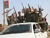 The YBŞ is a militia that is made up of only Yazidi people,[5] both men and women, with roots dating back to 2007. The YPG, a PKK affiliated militia known for its women fighters, played a large role in the training of YBŞ forces.[5] In the summer of 2015, the number of soldiers in the YBŞ totaled around 2,000 Yazidi men and women.[7] This number continues to rise due to training by YPG and other support. The YBŞ assisted the YPG in all actions in Sinjar.[8] In YBŞ' early existence it assisted in maintaining supply roads for HPS and YPG as a corridor was created for Yazidi safe passage out of Sinjar.[8]
