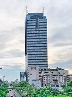 Sinn Sathorn Tower (Thai: สินสาธร ทาวเวอร์) is a skyscraper in Thonburi side, Bangkok. The total height of 195 metres (640 ft) is 44 floors, located at 77/8 Krung Thon Buri Road, Khlong Ton Sai Subdistrict, Khlong San District near the foot of Taksin Bridge, with total area of 120,000 square meters. Construction started in 1989. Completed in 1993, there were 255 units, each with a living area of 170. The square meter is 352 square meters, the cost is 2,000 million baht by Sinn Estate Property Co., Ltd. together with many other companies. It was once the tallest building in Thailand, and the tallest on the Thonburi side, until taken over by The River in 2011.