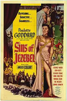 Sins of Jezebel is a 1953 American historical drama film produced by Sigmund Neufeld and directed by Reginald Le Borg. It stars Paulette Goddard as Jezebel, the biblical queen of the northern kingdom of Israel during the 9th century BC. The film was shot in Ansco Color for widescreen projection.[2][3]