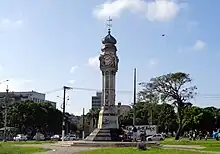 The monument in the center of the square is a clock built in 1930 by the English company J.W. Benson. and donated by Intendant Antonio Faciola. It measures 12 meters high, is made of iron and features four lamps in a central clock.[3][5]