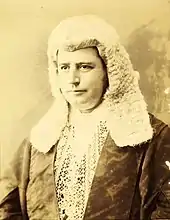 In 1876 Barton stood for the New South Wales Legislative Assembly in the poll of the graduates of the University of Sydney (who were required to wear gowns for the occasion), but was beaten by William Charles Windeyer 49 votes to 43.[19] When Windeyer resigned, Barton won the 1879 by-election. When it was abolished in 1880, he became the member for Wellington, from November 1880 to 1882, and East Sydney, from November 1882 to January 1887. At this stage he considered it "almost unnecessary" to point out his support for free trade.[16]